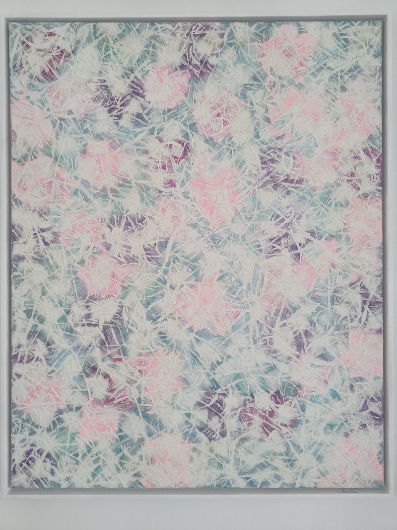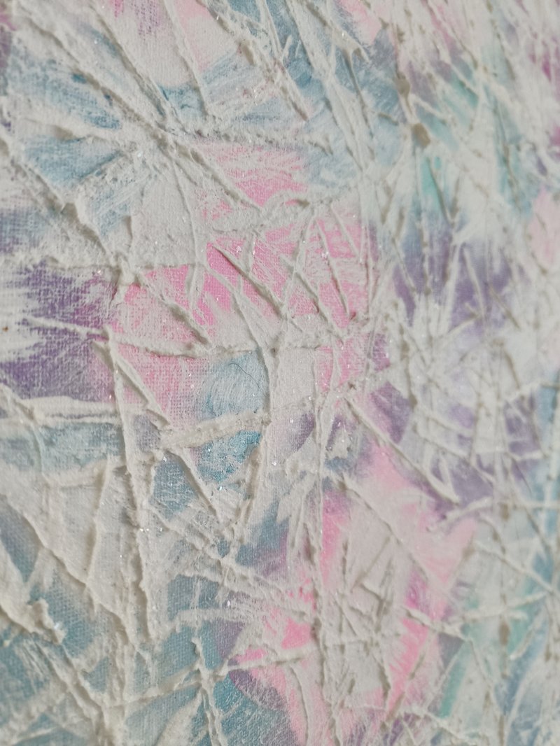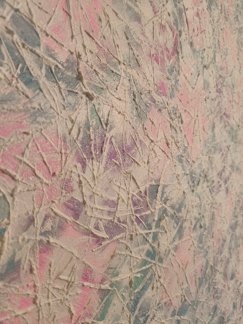 Textured acrylic painting. Pearl colors. Very settle frost like shimmer texture. Satin finish.
